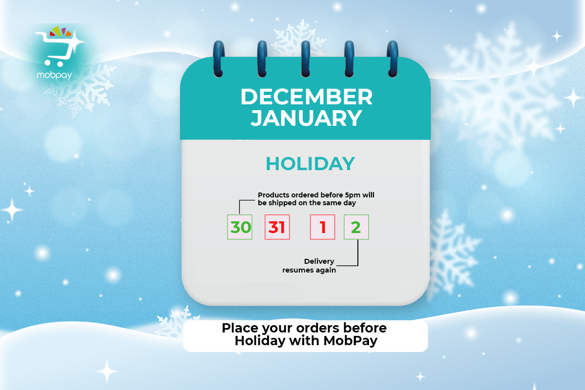 Orders placed by December 30, 5:00 PM will be shipped on the same day. Orders placed after this time will be shipped starting January 2.