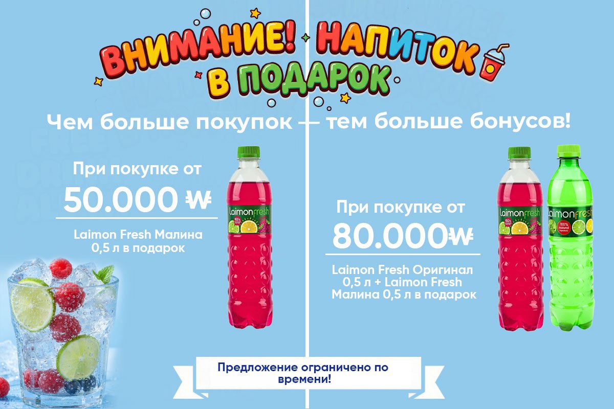 🛒 От 80 000₩ — Laimon Fresh Original 0,5 л + Berries 0,5 л в подарок!